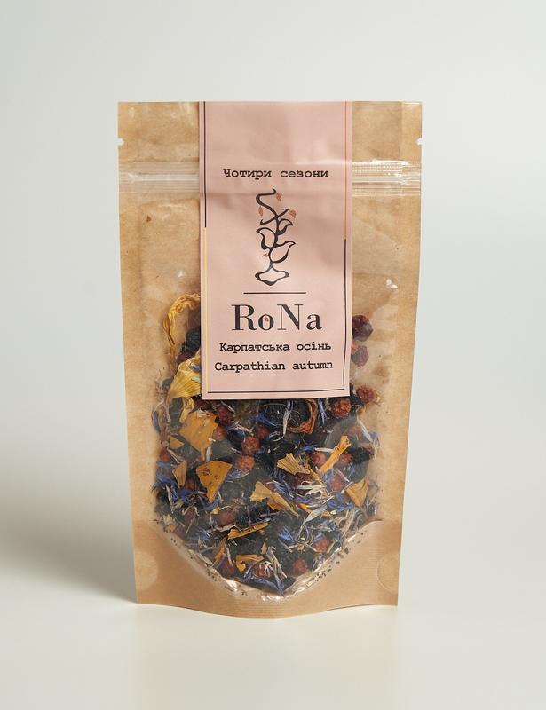 Осенний сбор – насыщенность (накопление) жизни, способствует и помогает организму удерживать и накапливать витамины, минералы, полезные вещества, способствует укреплению и устойчивости организма к первым холодам. Состав: ягоды: (черники, рябина черноплодной, бузина черная, смородина, рябина красная), лепестки подсолнечника, лепестки василька, изюм, шиповник. Не имеют посторонних добавок, только натуральные травы, цветы, ягоды, плоды которые собирают в Карпатских лесах, лугах, горах.