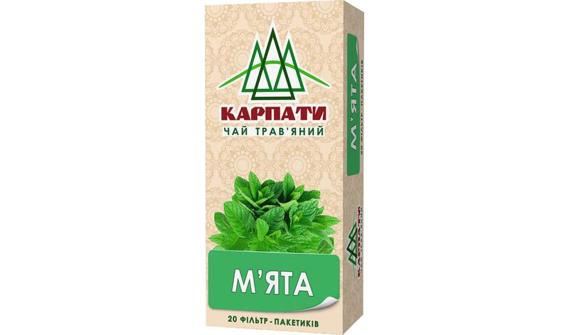 Карпаты Мята – травяной чай в пакетиках. Состав: Листья мяты перечной 100%.