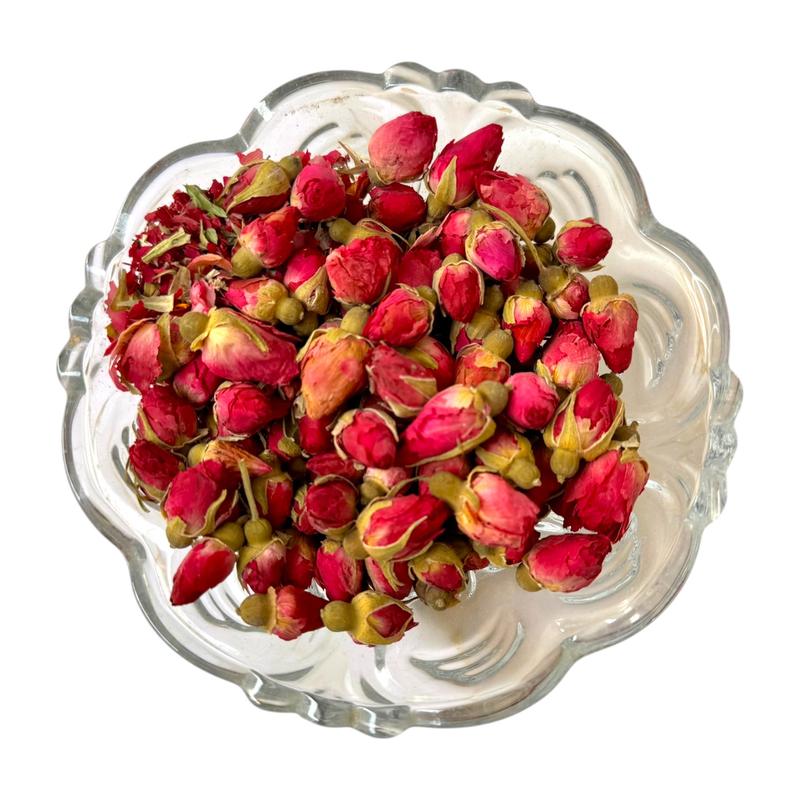 Бутоны дикой розы 0.200грамм Бутоны дикой розы - это маленькие сушеные бутоны роз, похожие на миниатюрные драгоценные камни. Сухие бутоны дикой розы выделяются своим насыщенным рубиновым цветом, небольшими размерам и тонким ароматом. Довольно долгое время сушеная чайная роза в основном применялась как полезная добавка к чайным напиткам, а сейчас пищевая роза ещё и самый модный и распространенный в Европе декор для десертов и прочих блюд. Цветки розы великолепны как самостоятельный напиток и как составная часть самых разных травяных и цветочных смесей. Традиция добавлять розу в чай широко бытует в Поднебесной со времен династии Мин. Роза хорошо сочетается с зелёными чаями, улунами, красными и чёрными чаями. При добавлении в чай, бутоны роз придают ему нежный, сладкий, легкий и пикантный цветочный вкус и аромат. Обладает успокаивающим действием, помогает при депрессии. Отвар из бутонов роз обладает противовоспалительными свойствами и положительно влияет на пищеварение. Напиток из роз издревле использовался как косметологическое средство. Эфирные масла, содержащиеся в китайской розе, способствует омоложению кожи, стимулируют кровообращение и обеззараживают ее. При использовании "Бутоны роз" как добавки к чаю, следует исходить из пропорции 2-3 бутона на чайную ложку заварки или поэкспериментировать. Для приготовления настоя из розовых бутонов, берут 3-5 бутонов, на 150 мл воды. Вода не должна быть очень горячей, так как тогда эфирные масла быстро выветрятся. Настаивать нужно 5 минут и после этого можно пить. Бутоны цветов розы -- лучшее украшение романтического и мечтательного чаепития.