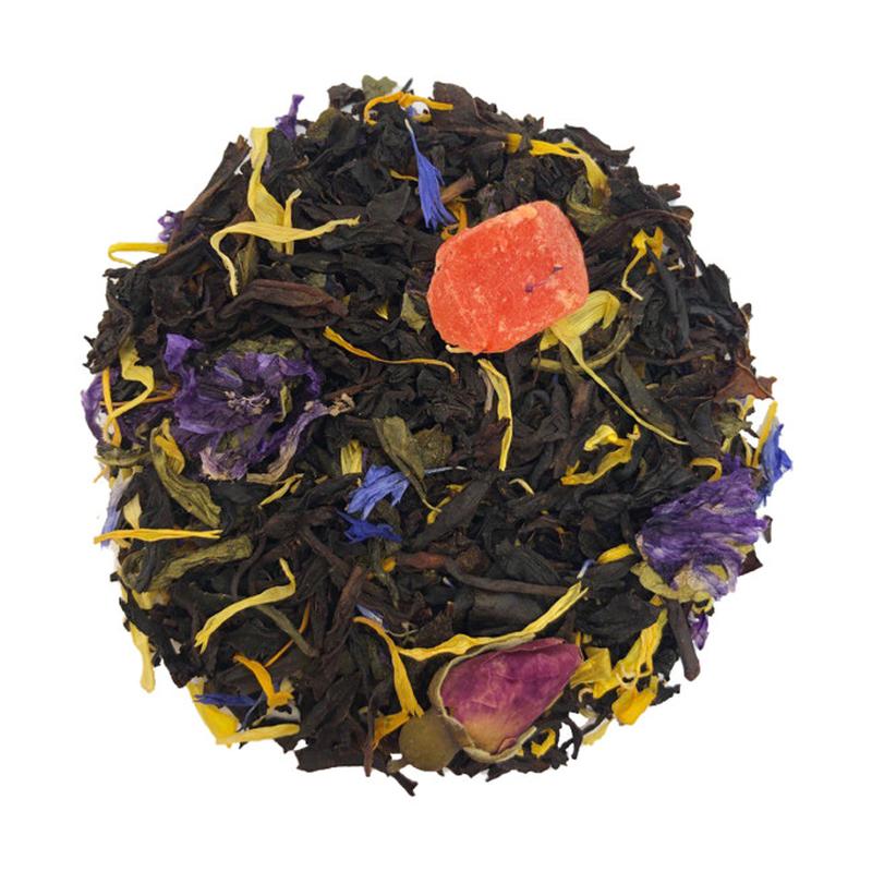 Композиция создана на основе черного и зеленого чая, с добавлением кусочков папайи, бутонов розы, василька, сафлора, мальвы и календулы. Напиток имеет сладкий привкус с натуральными ароматами «Персика» и «Суницы». ОСОБЛИВОСТІ ТОВАРУ Форма Листовый Тип Черный чай Вид Рассыпной Упаковка Пакет из полиэтилена Цены: 100 г - 210 грн. 500 г - 770 грн. 1 кг - 1 440 грн. Отправка только после полной передоплаты на карту