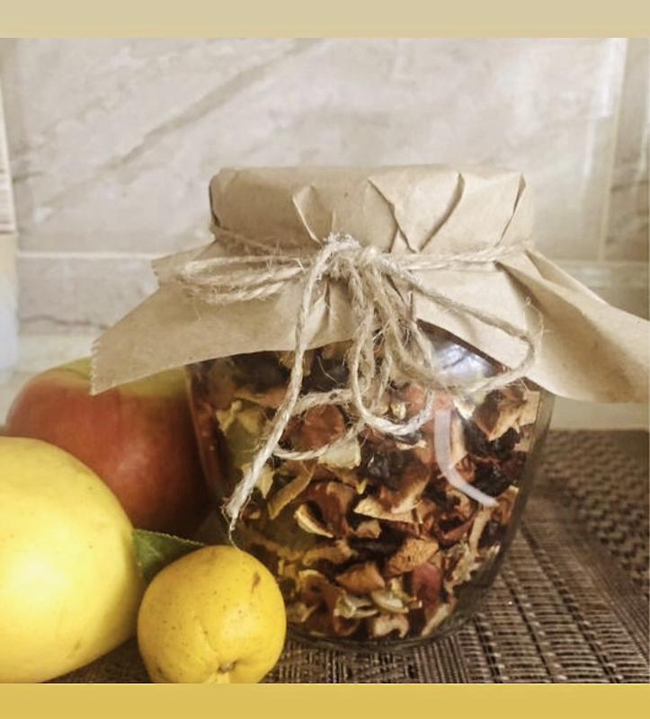 Натуральный витаминный чай из измельченных сухофруктов и ягод: яблоко, айва, слива, хеномелес, калина, шиповник, ирга, инжир, цедра апельсина. Сбор можно заваривать в термосе или прямо в чашке. Ингридиенты - только фрукты, без добавок и красителей. Всё собрано в экологически чистом районе. ЯБЛОКО - настоящий природный плод здоровья с большим количеством витаминов и микроэлементов. АЙВА благодаря дубильным веществам и органическим кислотам обладает противобактериальными и противовоспалительными свойствами. СЛИВА богата фитонутриентами и антиоксидантами. Эти компоненты полезны для иммунитета, снижают риск развития онкологии и замедляют старение клеток. ХЕНОМЕЛЕС- большое содержание аскорбиновой кислоты, витаминов В1, В2, веществ Р-витаминной активности делает хеномелес полезнее лимона и добавляет чаю приятную кислинку. Цедра апельсина снижает уровень холестерина в крови.