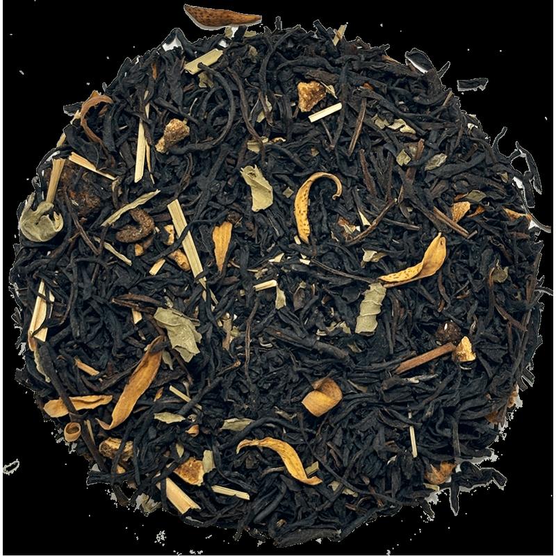 Черный чай с цедрой апельсина, кусочками алоэ, лепестками апельсина и сафлора, листьями мяты и лимонной травы. Имеет насыщенный аромат леденцов с цитрусовой ноткой