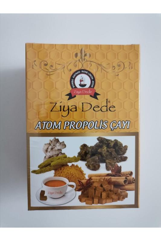 Ziya Dede Atom Propolis Äayı – это турецкий прессованный травяной чай в виде кубиков, известный своими согревающими свойствами и пользой для здоровья. Он популярен как "зимний чай" благодаря своему богатому составу специй и натуральных ингредиентов. Характеристики и преимущества Чай содержит исключительно натуральные компоненты, спрессованные в кубики с добавлением свекла. В составе: Корица Имбирь Гвоздика Куркума Духовой перец Черный перец Прополис Вода, свекольный сахар Благодаря своему составу, чай поддерживает иммунную систему во время простуды и гриппа. Также он может помогать при болях в мышцах, снимать усталость и улучшать концентрацию. Для приготовления достаточно добавить две кубики чая в чашку кипяченой воды и перемешать.