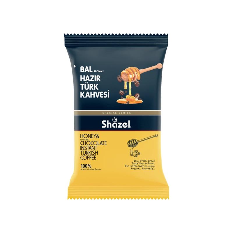 Качество Shazel снова радует нас своими новинками. Новый представитель нашей специальной серии продуктов, растворимый турецкий кофе Shazel с медом, станет гостем на ваших кухнях. Наша продукция под маркой Shazel, которая является пионером в области растворимого турецкого кофе, здесь с уникальной и естественной красотой меда, а также вкусом кофе с медовым турецким кофе.