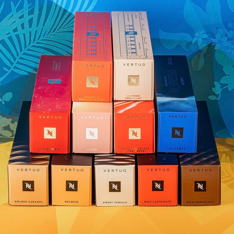 Мы приготовили специально для вас уникальный набор (все тубы по 230 мл) -Nespresso Vertuo Barista «11 друзей Баристы 230 мл» Содержание кофейной подборки: -Nespresso Vertuo Белый шоколад и клубника (10шт) 230мл -Vertuo SWEET VANILLA (Сливочный и сладкий), Швейцария (10шт) 230мл - Nespresso Vertuo ICE FORTE, Швейцария (10шт) 230мл - Vertuo Almond croissant (Миндальный круассан), Швейцария (10шт) 230 мл -Vertuo Peanut and roasted sesame (Арахис и жареный кунжут), Швейцария (10шт) 230 мл -Vertuo Gingerbread (Имбирный пряник ),230ml -Vertuo Half Caffeinato БИСКВИТНЫЙ И БАРХАТИСТЫЙ, Швейцария (10шт) 230 мл -Vertuo Coffee+ Vivida, Швейцария (10шт) 230 мл -Vertuo RICH CHOCOLATE (Сливочный и шоколадный) 230мл -Vertuo GOLDEN CARAMEL (Сливочный и бисквитный), Швейцария (10шт) 230 мл -Vertuo Melozio МЯГКИЙ И СБАЛАНСИРОВАННЫЙ, Швейцария (10шт) 230мл