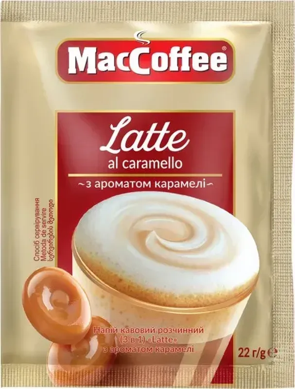 Кофейный напиток maccoffee 3в1 латте карамель 20 пакетов