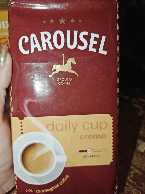 ☕молотый кофе Carousel Daily Cup Crema – мягкая, насыщенная кофеп с тонкой бархатистой пенкой и прижмным послесиаком. Кофе идеально подход для приготовления ароматного эспрессо или нежного латте. Вес - 500гр. Срок годности - 01.10.2026р.
