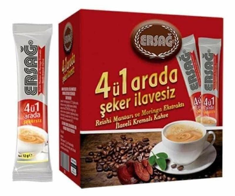 Розчинна кава 4 в 1 ERSAG Розчинна кавова суміш 4 в 1 з додаванням грибів Рейші, екстракт Моринги та сухого молока ERSAG -- це високоякісний напій, який вам неодмінно сподобається. Цей кавовий напій дійсно унікальний. В одній чашці чудово поєднується неймовірний смак, насичений аромат і міцність. Кава не тільки смачна, але й дуже корисна. Завдяки унікальному складу містить багато вітамінів і мінералів. У напої немає цукру. Вона допоможе посилити імунітет, очистити печінку, урегулювати рівень холестерину та цукру в крові, нормалізувати артеріальний тиск, поліпшити кровообіг. Кава з грибом Рейші й екстракт Моринги має антиоксидантні й антиокислювальні властивості. Тонізує, забезпечує зарядом бадьорості на весь день. Допомагає підтримати дієту, вгамовує відчуття голоду. Склад: освітлювач до кави 77.25%, розчинна кава 19%, екстракт грибів Рейші 2%, екстракт Моринги 1.75. ПРИМІТКА: містить молочний продукт. Може містити сліди соєвих і пшеничних продуктів. Спосіб приготування: Покладіть вміст пакета (12 г) у чашку, залийте гарячої води 180 мл, добре перемішайте та співайте. Вага нетто: 240 г (20 пакетиків по 12 г) Дата зберігання та номер партії вказані на пакованні. Зберігати в прохолодному та сухому місці, далеко від пахучих речовин. Не містить продуктів тваринного походження. Реєстраційній номер виробництва: TR-20 K-010657
