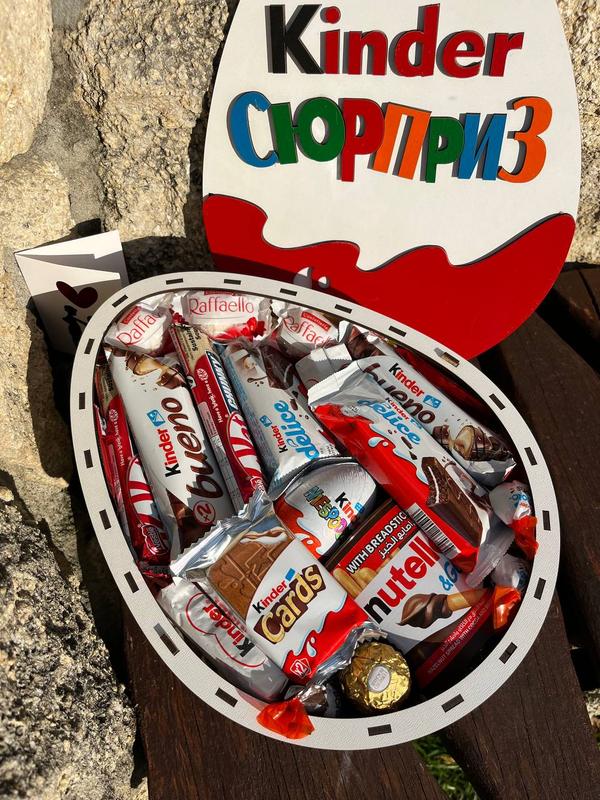Арт.1006 Киндер М Размеры: 30/22/8.8 В бокс 🎁 входить: 🎁деревянная коробочка в виде KINDER 🎁 открытка 🎁Nutella Go 🎁kinder 🎁kinder chocolate 3х 🎁kinder cards 🎁kinder duplo 🎁kinder bueno 🎁kinder delice 2x 🎁ferrero 🎁kit-kat 2x 🎁PowerGum 🎁choko Bon’s 2x