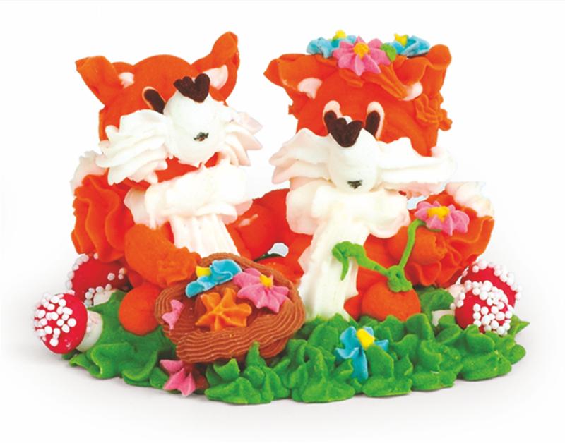 Сахарное украшение "Две лисички на поляне" – это съедобные кондитерские изделия, которые могут служить украшением десертов, тортов и пирожных.