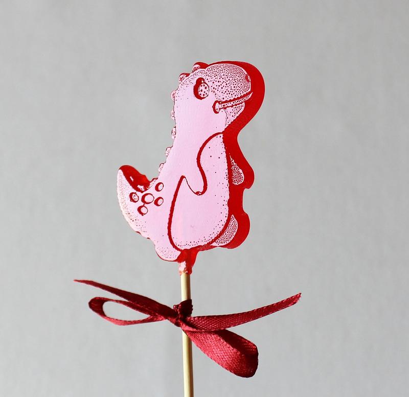 Леденец топпер на палочке динозавр тиранозавр № 1, без сахара, разные цвета