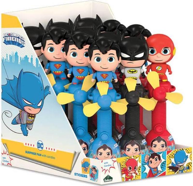 Вентилятор-сюрприз с жевательными конфетами relkon 76202 super friends 10 г