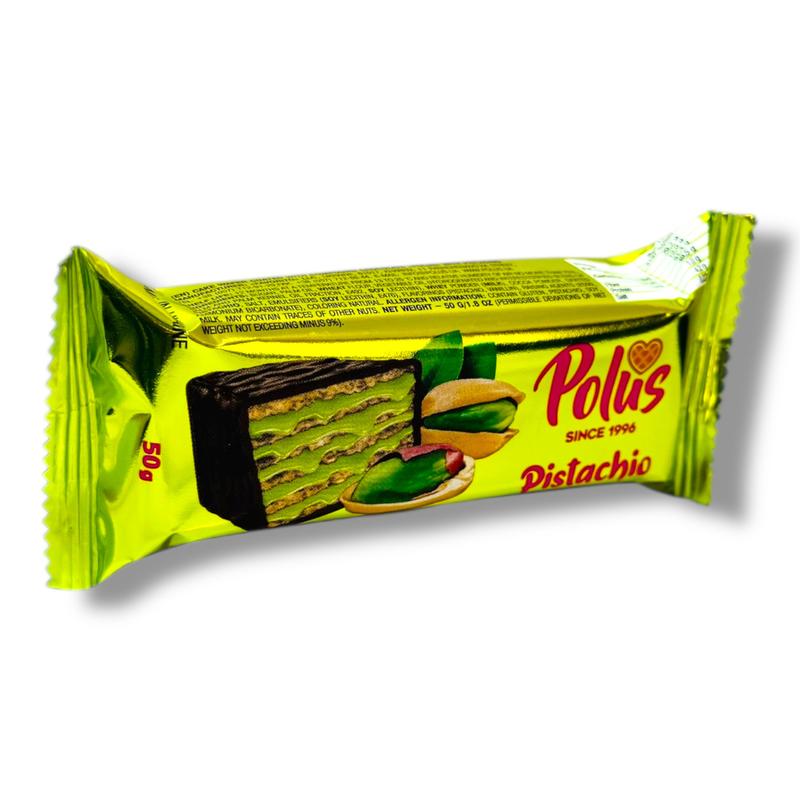 Батончик шоколадно-вафельный polus фисташка 60г