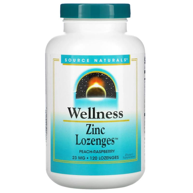 Source naturals, wellness, леденцы с цинком, вкус персика и малины, 23 мг, 120 леденцов