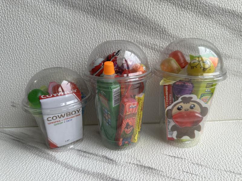 Солодкі набори: желейні цукерки Санта, сніговик,губи,Губка боб, капсули,льодяники на паличці,жувальна гумка, цукерка-ніж,цукерки-сигарета з тату та стріляючою пудрою, желе мобілка
