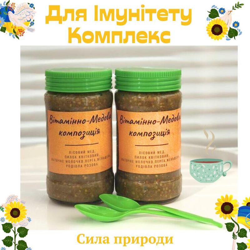 Мед із пергою, матковим молочком, пилком, женьшенем, макою перуанською та гінкго-білоба об'ємом 400 грамів Змачно та корисно — сила бджіл без добавок. Корисні властивості меду з пергою: - Для загального зміцнення організму: посилює імунітет, збагачує вітамінами (A, групи B, C, D, E, K, PP) та мінералами (кальцій, калій, натрій, фосфор, магній, залізо та ін.). - Позбавляє синдрому хронічної втоми, покращує працездатність, сприяє відновленню після перенесених травм або операцій. Для серцево-судинної системи: - Покращує кровообіг (включно з зоною головного мозку), нормалізує тиск, знижує рівень холестерину, застосовується для профілактики та лікування анемії. Для шлунково-кишкового тракту: - Покращує обмін речовин, сприяє набору маси, усуває порушення травлення (кольки, закрепи, діарея), використовується під час лікування гастриту, виразок, панкреатиту та захворювань печінки. Для репродуктивної системи чоловіків і жінок: - Нормалізує гормональний фон, регулює менструальний і овуляторний цикли в жінок. - Підвищує потенцію в чоловіків, покращує якість сперми, сприяє зачатню та сушінню дитини. Для ендокринної системи: - Позитивно впливає на роботу щитоподібної залози. Для нервової системи: - Позбавляє мігренів, нормалізує сон, покращує пам'ять і концентрацію, є профілактикою впливу стресів на організм. Для очей: - Покращує гостроту зору. Також є друга мед продукція з горіхами та корінням, що не є лікарською продукцією.