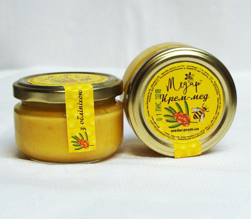 Облепиха - королева здоровья. Прекрасное сочетание нежного крем-меда и целебной ягоды невозможно забыть. Облепиха, солнечная ягода с непохожим ни на что вкусом - это целый источник витаминов. Это невероятно вкусно и при этом такой десерт моментально взбодрит и поднимет настроение. Интересный факт: многие считают, что кремовый мед - это видоизмененное лакомство, которое лишено полезных свойств натурального пчелопродукта. На самом же деле, технология сбивания ничем не отличается от банального помешивания ложкой - только в ускоренном темпе. Полезны и вреда от взбитого меда - ровно столько же, сколько и от необработанного пчелопродукта. То есть Вы можете использовать его как природный источник витаминов, опасаясь только одного противопоказания - индивидуальной аллергии. Если же Вы не страдаете непереносимостью меда, то его сбитая вариация также не повредит Вашему здоровью.