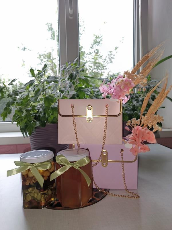Набор мед с орехами (кешью, фундук, миндаль, Греческий орех; мед липа-акация) вес 320 грамм и мед травяной вес 350 грамм. цена подарочного набора 315 грн