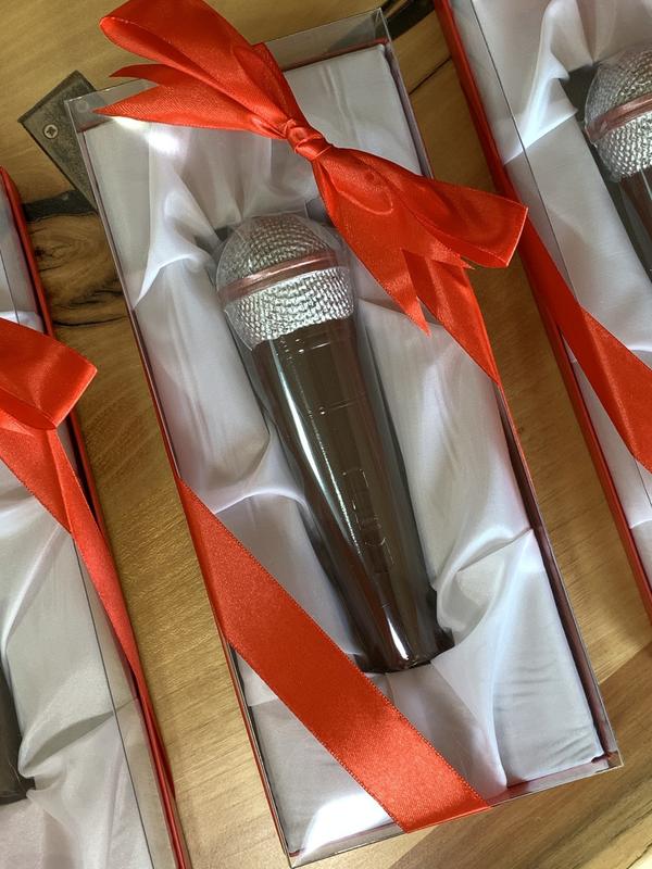 Шоколадный микрофон 3d в натуральную величину. микрофон из шоколада в премиальной коробке...