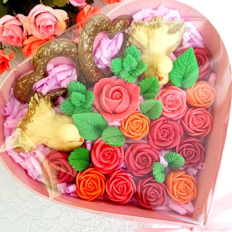 Шоколадный подарочный набор букет на свадьбу цветы розы и голуби из шоколада подарок женщи...