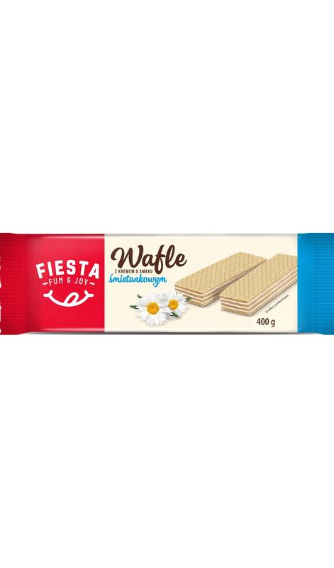 Вафли кремовые Fiesta 400г со сливочным вкусом Вафли с кремом сделают ваши совместные минуты приятнее своей необычной сладостью в сочетании с изысканным хрустом. Состав: пальмовое масло, сахар, пшеничная мука, сухая сыворотка (из молока), пшеничный крахмал, обезжиренное сухое молоко (1,6%), рапсовое масло, эмульгатор (соевый лецитин), картофельный крахмал, порошок яичного желтка, соль, краситель (карамель), ароматизатор, разрыхлитель (карбонаты натрия). Продукт может содержать: арахис, лесные орехи, семена кунжута.