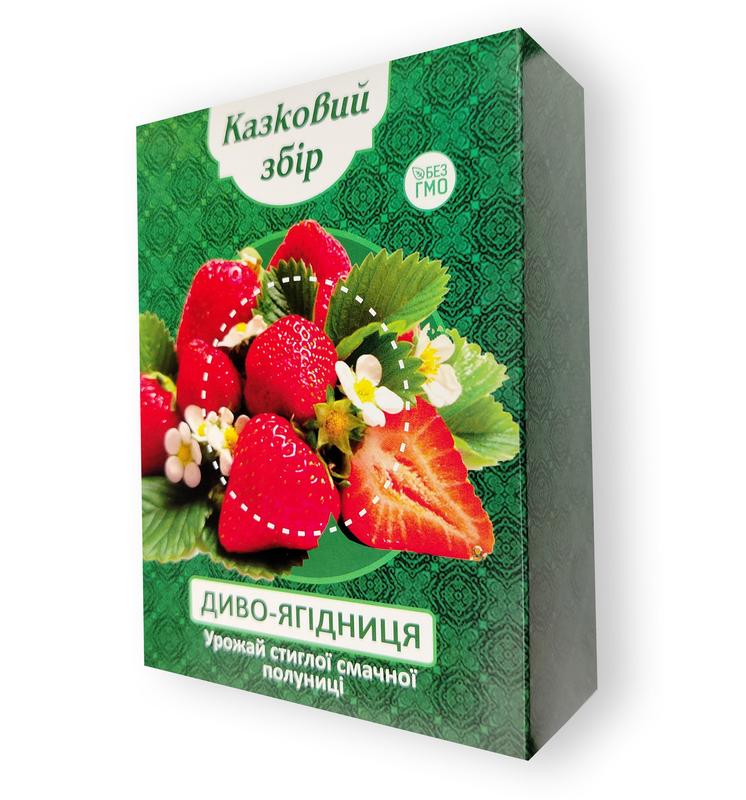 Чим корисна полуниця? Полуницю часто називають королевою ягід. Крім високих смакових якостей, він несе у собі величезну користь: 1. 2. Відновлює дефіцит вітамінів А, С, Е, Н, РР, групи В, а також цінних мінералів – натрію, фосфору, йоду, цинку, калію, кальцію. 3. Нормалізує діяльність серцевого м'яза, зміцнює стінки кровоносних судин, стимулює мікроциркуляцію крові у проблемних зонах. 4. Служить профілактикою розвитку запорів та інших порушень роботи травного тракту. 5. Покращує стан шкірних покривів, омолоджує колір обличчя, усуває пігментні плями. 6. Зменшує біль у суглобах при артритах та артрозах. 7. Має потужні антиоксидантні властивості – нейтралізує дію вільних радикалів, знижує ризик розвитку онкологічних захворювань. 8. Покращує зір, перешкоджає розвитку катаракти та короткозорості. 9. Нормалізує роботу жіночої репродуктивної системи, підвищує фертильність, виступає як природний афродизіак. Казковий збір - простий спосіб забезпечити свою сім'ю запасом вітамінів та мікроелементів. У складі набору немає пестицидів чи інших токсичних сполук, тому готовий урожай можна навіть дітям. ## Як працює Один із секретів високої врожайності такого набору – застосування біостимулятора росту, розробленого російськими вченими. Він підвищує захисні властивості рослини на молекулярному рівні. Таке підживлення знижує ризики розвитку інфекційних захворювань, покращує адаптацію саджанця до негативних факторів довкілля. Як запевняють реальні відгуки, диво-ягідниця Казковий збір дозріває швидше, ніж звичайні саджанці. Цей ефект – один із наслідків застосування біостимулятора росту. Він також підвищує концентрацію поживних речовин у плодах, покращує їх цукристість та щільність м'якоті. Комплектація Вивчивши відгуки про полуничну чудо-ягідницю, неважко зрозуміти, що вона є набором з насіння сорту Альбіон, зразка тропічного грунту і живильного біосубстрату. Ця комбінація забезпечує невибагливість рослини, її прискорене зростання та підвищену врожайність. Серія реалізується в одиночній упаковці. На які результати очікувати? Як стверджують відгуки, диво-ягідниця плодоносить цілий рік. Перший урожай можна збирати вже за три тижні після розтину упаковки. Надалі заготівля даватиме від 3 до 5 кг свіжої полуниці кожні 14 днів. Термін плодоношення такого набору при правильному догляді становить три роки. Додаткові витрати на підтримання мікроклімату в приміщенні або підживлення рослини не потрібні. ## Що кажуть агротехнологи? Альбіон - це ремонтантний сорт, тобто він не залежить від тривалості світового дня і плодоносить так званими хвилями. До інших особливостей цієї рослини належать: - вертикальне формування квітконосів; - висока посухостійкість; - стійкість до сірої гнилі та антракозу; - великі плоди – по 40-60 г кожен; - темно-червоний колір та глянсовий блиск ягід; - медовий смак і запах, що нагадує лісову суницю; - щільна та тверда м'якоть, що полегшує зберігання та транспортування плодів. Єдина складність, яку важливо враховувати при вирощуванні цього сорту, – його низька морозостійкість. Але у квартирних умовах цей фактор ризику виключено. Ті, хто знайомий із сортом Альбіон, знають, що його темпи врожайності справді вражають. А додаткова стимуляція за допомогою біокомплексу та спеціально підготовлених ґрунтів дозволяє посилити цей ефект. Тож