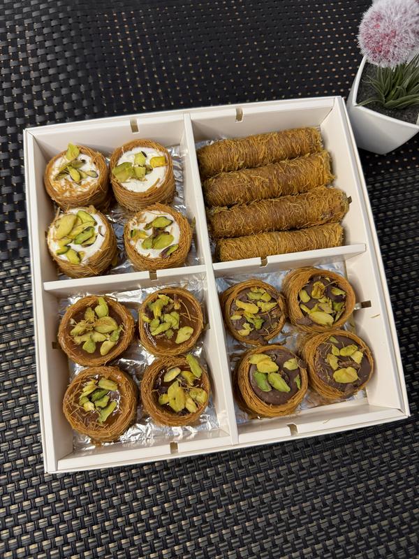 Подарунковий набір неймовірно смачної турецької пахлави в тісті кадаїф. В набір входить 4 види пахлави. Склад набору може змінюватися в залежності від наявного асортименту на складі. Вага набору : +-500 г