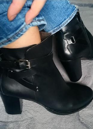 Натуральные кожаные ботильоны🖤
