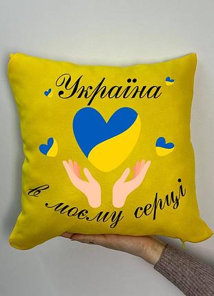 Подушка с принтом габардиновая Николаевное худи может каждый, желтая 35х45 (1035)