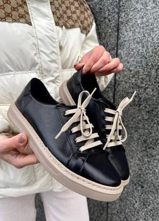 Базовые удобные черные кеды на каждый день с широкими шнурками