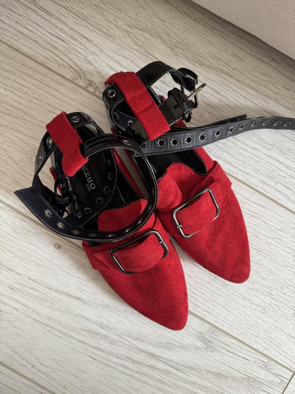 Красные замшевые балетки с черными ремешками, острый носок, очень стильная обувь на весну, будут ярким акцентом в образе 💥