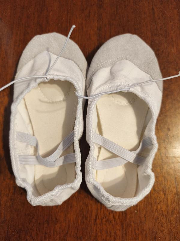 Чешки из ткани, перед отделан кожей, затягиваются резинкой, длина 21,5см. На пятке и стопе вложено смягчение.