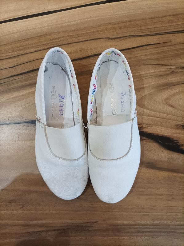 Шкіряні чешки в доброму стані. Є незначні потертості на носочках, і трохи позадирались устілки, можна підклеїти. На фото постаралась максимально передати ці дефекти.