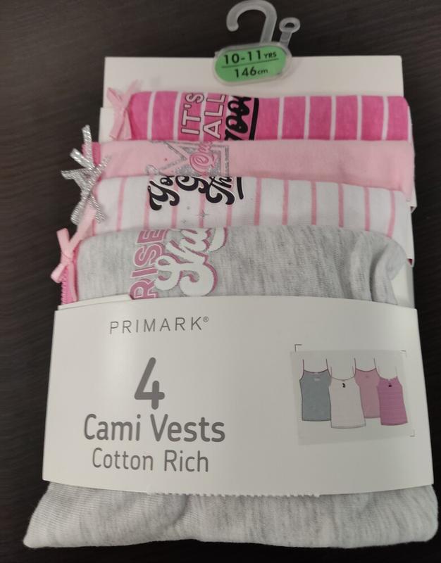 В наявності Дуже гарні по якості майки для дівчинки Фірма - Primark Склад -60 %-котон 40%- поліестер Розмір -128.134.140. 146 (10-11)158 см Код товару -0445 Ціна -1шт-90 грн Ціна набору -340 грн Заміри - 146-довж-52, ширина-36