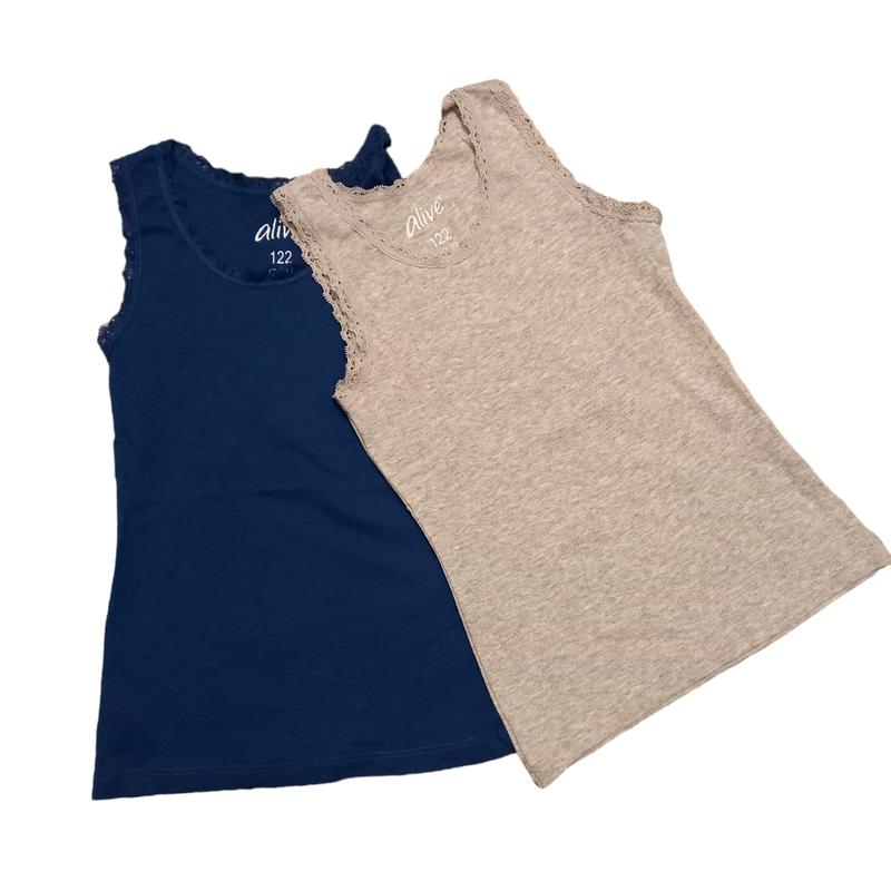 Майка для девочки, комплект 2 шт, приятная к телу состав 100% хлопок Полуобхват груди- 26 см Длина изделия- 44 см р.122 см