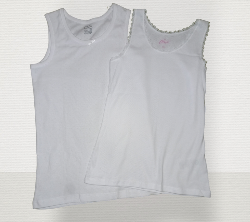 Майка для дівчинки, м'яка тканина і приємна до тіла OVS + Alive 100% бавовна Напівобхват грудей- 34 см Довжина виробу- 54 см та 59 см р. 11-12 років (146 -152 см)