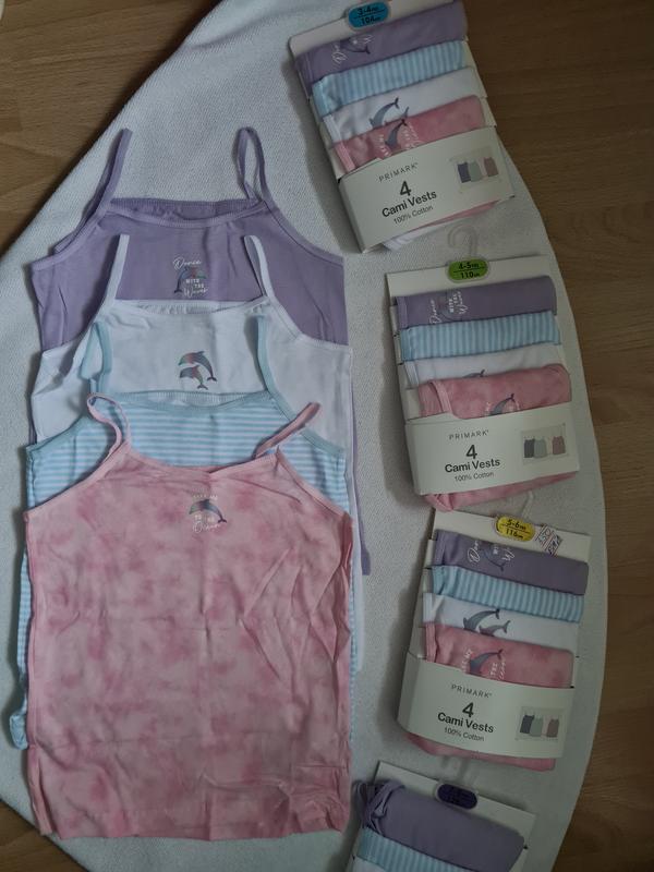 Майки фирмы Primark куплены в Испании фирменный магазин. Качественные и очень красивые Набор состоит из 4 шт Тканина 100% cotton Наличие размеров 3-4 р 98/104 cm 4-5 р 104/110 см 7-8 р 122/128 см На фото замеры размера 4-5 р 110 см Дополнительно фото и замеры в пп Отправка новая или укрошта Предоплата за доставку в две стороны или полная оплата или заказа через сайт безопасная оплата.