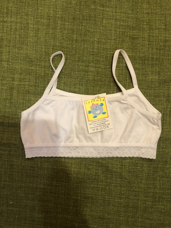 Топ-лиф на девочку С тонкой кружевной лентой В наличии 3 размера: на рост 110 см (3 шт) на рост 122 см на рост 128 см Замеры не в растянутом состоянии смотрите на последних фото. Тканина: 95% бавовна; 5% еластан
