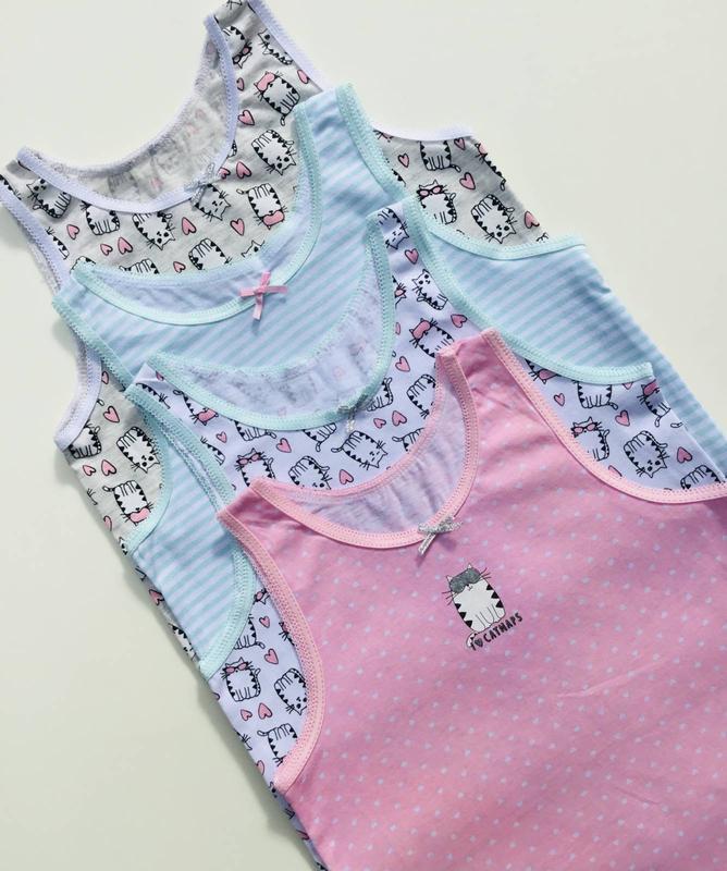 Primark Комплект из четырех маечек с принтом "Коты" Нежные, красивые цвета На обычных бретельках Комплект из 4 штук Размеры: 92 см (1.5-2 года), 98 см (2-3 года), 104 см (3-4 года), 110 см (4-5 лет), 116 см (5-6 лет), 122 см (6-7 лет), 128 см (7-8 лет),134 см (8-9 лет) Состав: 3 шт. 100% бавовна 1 шт. 59% хлопок, 41% полиэстер