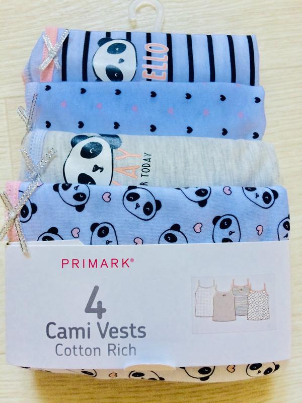 Primark оригинал Англия Комплект маечек с принтом "Панда" на тонких бретельках Комплект 4од. Размеры: 92 см (1.5-2 года), 98 см (2-3 года), 104 см (3-4 года), 110 см (4-5 лет), 116 см (5-6 лет), 122 см (6-7 лет), 128 см (7-8 лет),134 см (8-9 лет),140 см (9-10 лет), 146 см (10-11 лет), 158 см (12-13 лет) Состав: 3 ед. 100% бавовна 1 од. 59% хлопок, 41% полиэстер