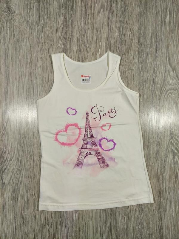 Майка для девочки. Цвет молочный. Возраст 10/11 лет. Рост 146-152 см. Замеры: ширина плеч 22 см, Пог 33 см, длина изделия 50 см. Производитель Турция. Цена 89 грн.
