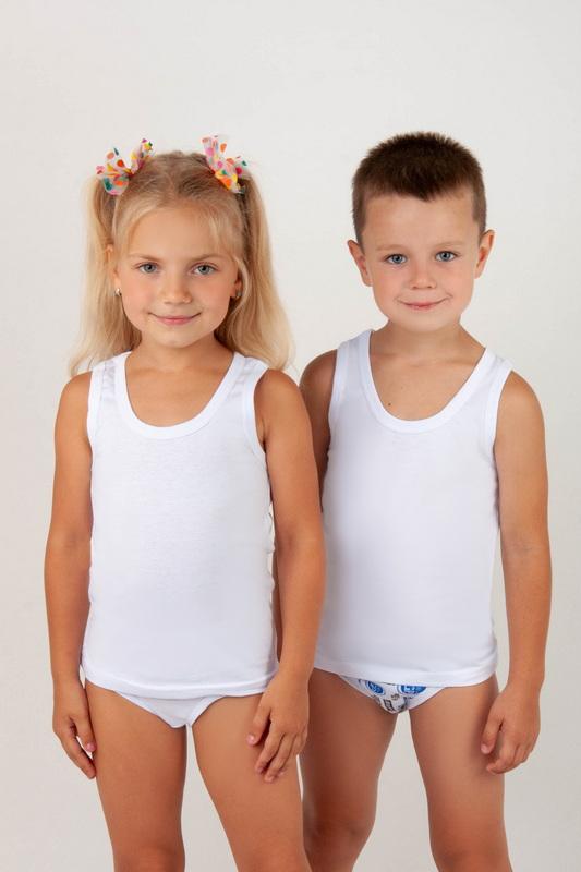 Майка выполнена из тонкого легкого трикотажного полотна "кулир". Белая майка для ежедневного использования в любое время года. Предназначена для детей от 1,5 до 14 лет в зависимости от роста. Полотно: кулир Состав: 100% бавовна ,,1064