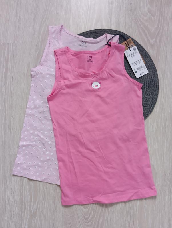 набор маек бренда OVS на девочку, возраст 9-10 лет, рост 134-140 см. хлопок 100%. цена за набор, в наборе 2 майки замеры ПОГ 32,5 см длина от плеча 53 см