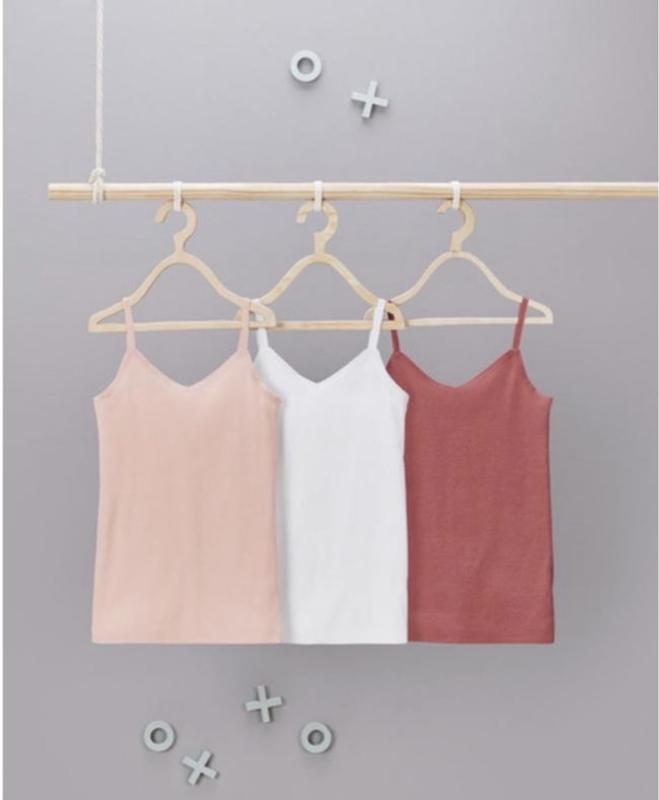 Розмір 158-164 Майки з м'якого бавовняного трикотажу в рубчику з тонкими бретелями. Приємний комфорт при носінні завдяки високому вмісту бавовни. Оптимальна посадка завдяки еластану (LYCRA®). Кількість 3 шт Заміри: Довжина 59 см ПОГ 35 см