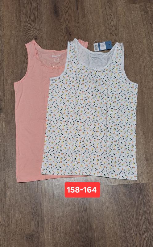 Продаж набором PEPPERTS набор майок 2 шт Размер 158-164 цена за набор 220 грн. безопасной оплатой. При оглате на карту 200 грн Розовая длина 62,5. Ширина 38 Белая в цветочки длина 61,5. Ширина 38 склад 95 бавовна, 5 еластан