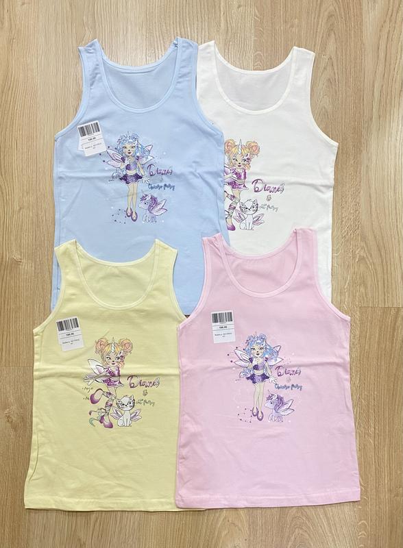 Майки на дівчаток, розмір 6/7 роки Довжина по спинці 44 см, груди 29 см