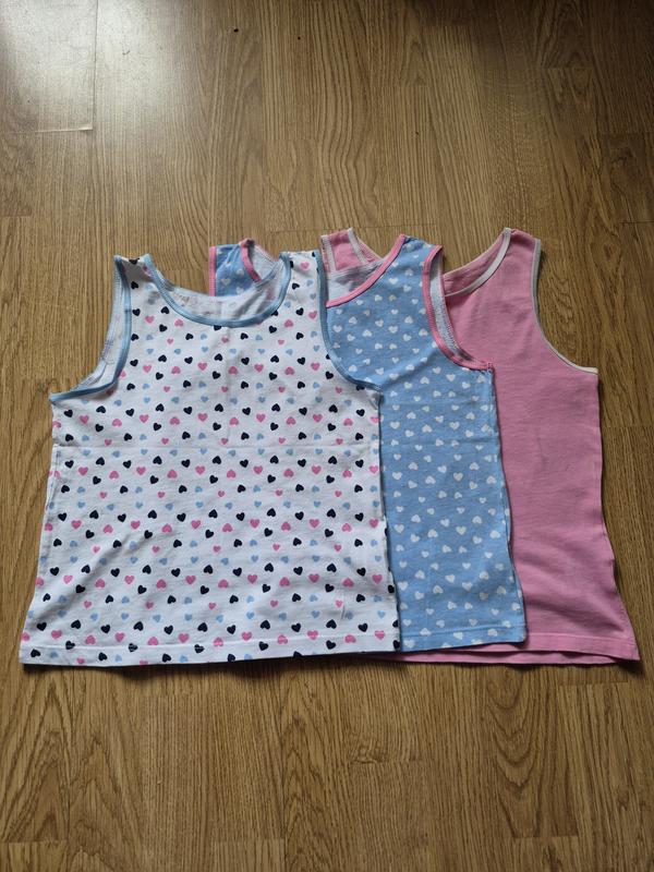 Размер 128-134 на возраст 8-9 лет. Набор почти новый. Надевали одну из маек несколько раз.