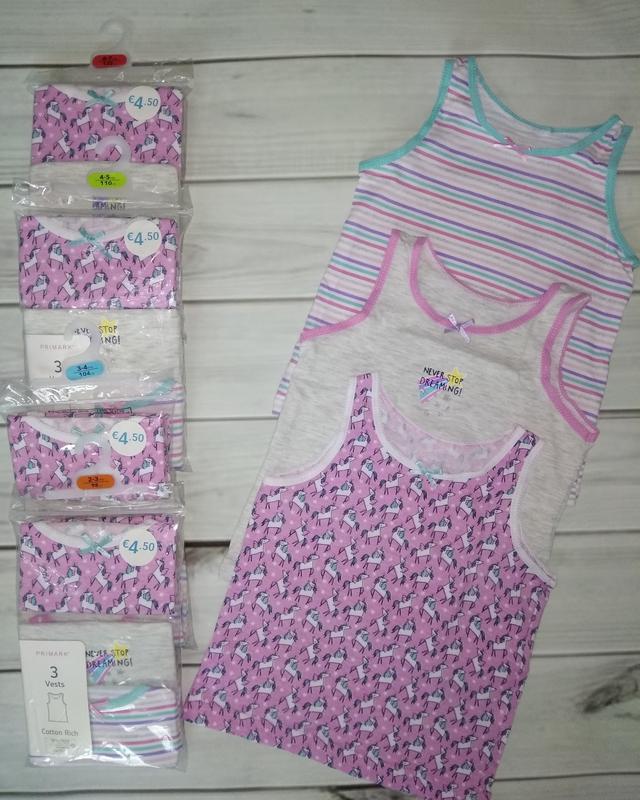Набор маек Primark из 3 штук. Размеры : 92: длина 34см, ш рина 26,5 см 104: длина 38см, ширина 27,5см 110: длина 39см, ширина 30см 122: длина 44см, ширина 31см Состав ткани: 100%котон Страна производитель: Бангладеш