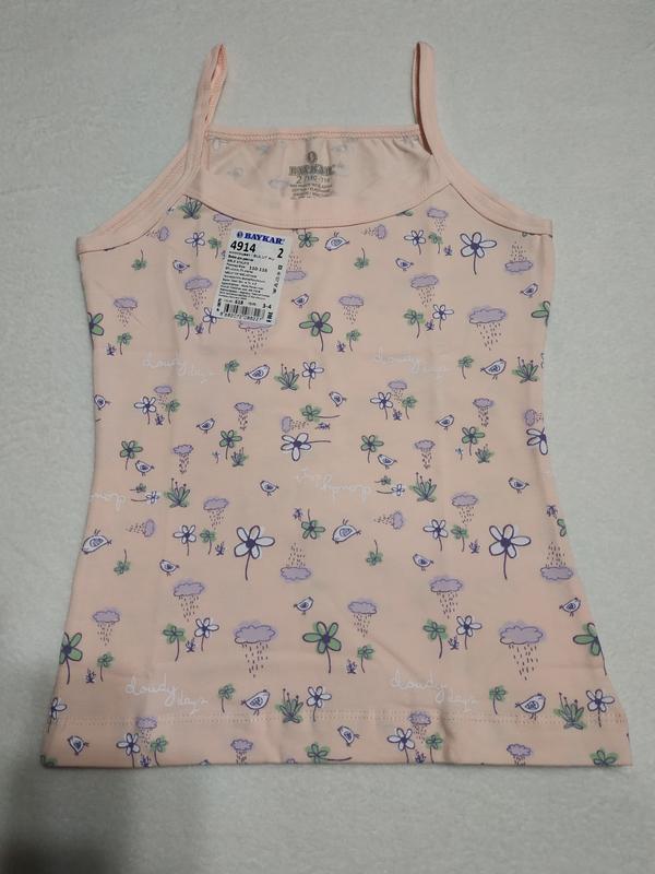 Майка для девочек фирмы Baykar. Имеются такие размеры: размер 5: 9-10 лет , рост 146-152 см, Замеры: ПОГ 35 см, Высота изделия с брителькой 51 см Состав: 95 % хлопка, 5% эластана. Страна производитель - Турция. Качество отличное. Если нужны дополнительные фото изделия(фото на теле не делаю) или замеры, всегда отвечу, поэтому делайте покупку обдуманно. При покупке любой продукции белья от 6-ти единиц - скидка 3%. При следующей покупке скидка 3%.