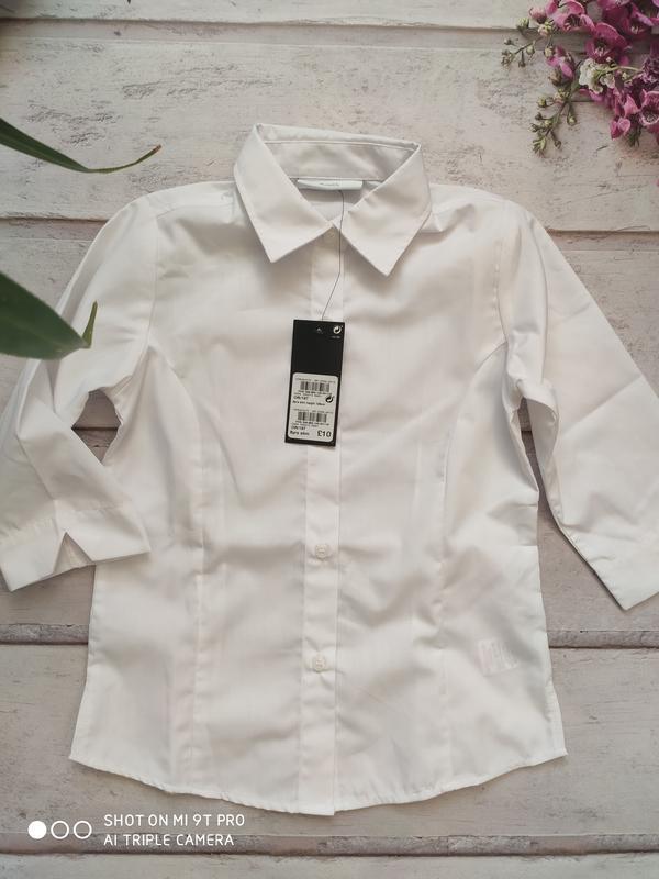 Рубашка школьная Next полу рукав рр.8 лет \128 см. Заамеры: длина по спинке 48 см., полу рукав длина 31 см.. ПО под мышками 35 см., плечи 27 см. Состав: 65%котон 35%полиэстер